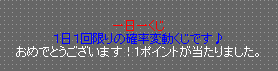 0.1~1000Pが当たるらしいのですが、私は0.1Pと0.3Pと0.5Pしか当たったことがなかったので思わず報告ですv